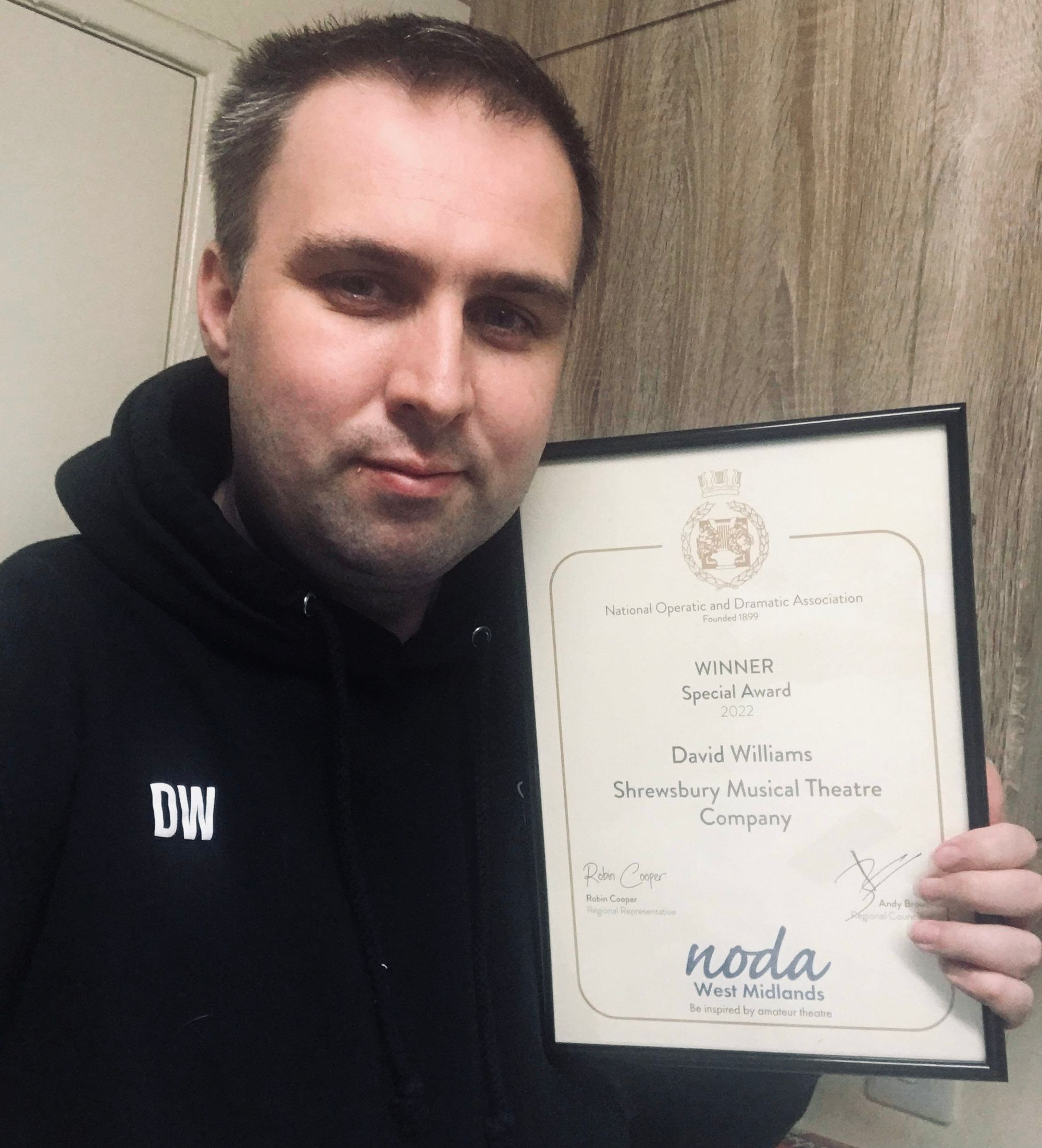 He was presented with the NODA special award (given to only one person in the whole of Shrosphire each year) by area NODA rep Robin Cooper at our concert rehearsal yesterday, he advised the award was nominated on the basis of David's continued support of both SMTC, Pontesbury Players and many other local musical theatre groups for helping to spread the word about our productions.